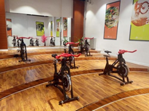 有氧操课室:(各种健身操、踏板操、瑜伽课程等)、动感单车房。
